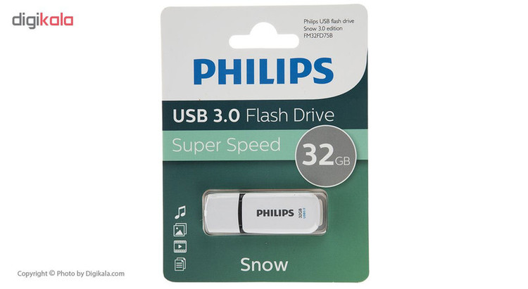 فلشمموری مدل «FM32FD75B» از محصولات سری Snow شرکت «فیلیپس» است که با ظرفیت 32 گیگابایت راهی بازار شده است. این فلش مموری از طریق رابط پرسرعت USB3.0 به رایانهی شما متصل میشود و میتواند اطلاعات را با سرعت زیاد انتقال دهد. جنس بدنهی این محصول از پلاستیک است که کیفیت ساخت بالایی دارد و میتواند در برابر بسیاری از صدمات روزمره مقاومت خوبی از خود نشان دهد. همچنین این فلش توانسته است استانداردهای CE و FCC نیز کسب نماید. برای این فلش یک درب تعبیه شده است که از ورود گرد و خاک به داخل آن جلوگیری میکند. در قسمت بالای فلش، یک شیار برای اتصال بند یا قراردادن فلشمموری در جاسوییچی مشاهده میشود که تا حد زیادی احتمال گمشدن فلشمموری را کم میکند. اگر قصد تهیه یک فلشمموری برای ذخیرهی اطلاعات خود را دارید و میخواهید همیشه آن را همراه خود داشته باشید، فلش مموری سری Snow محصول مناسبی برای شما خواهد بود.