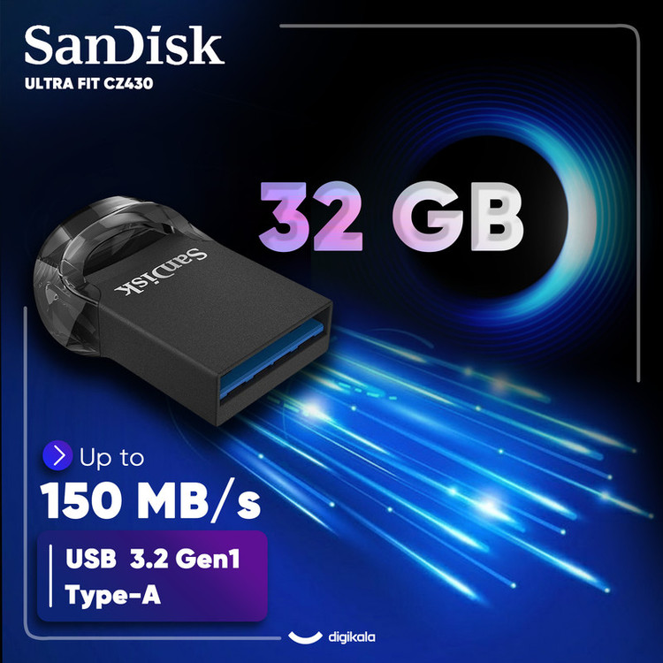 فلش مموری سن دیسک مدل ULTRA FIT USB 3.1 CZ430 ظرفیت 32 گیگابایت