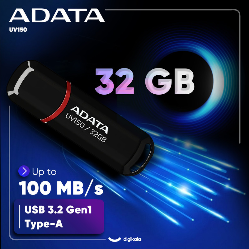• فلش مموری UV150 ترکیبی از ظاهر زیبا و جواهر مانند همراه با قیمت اقتصادی و سرعت بالا میباشد. این فلش مموری با بهرهگیری از رابط USB 3.0 بالاترین سرعت خواندن و نوشتن را در اختیار شما قرار میدهد. پورت USB 3.0 قابلیت انتقال دوکاناله دارد و قادر است به شما حداکثر سرعت خواندن تا 90 مگابیت بر ثانیه و حداکثر سرعت نوشتن تا 40 مگابایت در ثانیه را ارایه دهید و با USB 2.0 هم کاملاً سازگار است. کمپانی ای دیتا UV150 را مدرن، به روز و کاربردی و در رنگهای قرمز و مشکی طراحی و به بازار عرضه کرده است، البته ناگفته نماند سطح براق UV150 زیبایی آن را دو چندان کرده است. شما میتوانید درپوش این فلش مموری را در حین استفاده در قسمت انتهایی آن قرار دهید تا گم نشود و فلش مموری زیبایی خود را همچنان حفظ کند. همچنین یک شکاف بزرگ در پایین درایو قرار داده شده تا شما بتوانید هر نوع بندی را که میخواهید به آن قسمت متصل نمایید تا امکان گم شدن خود فلش هم به حداقل برسد. UV150 در کل یک فلش مموری مطمئن برای ذخیرهسازی اطلاعات شما است که بسیار زیبا و براق طراحی شده و در عین شکیل بودن قادر است سرعت بالایی را هم به شما ارایه دهد.