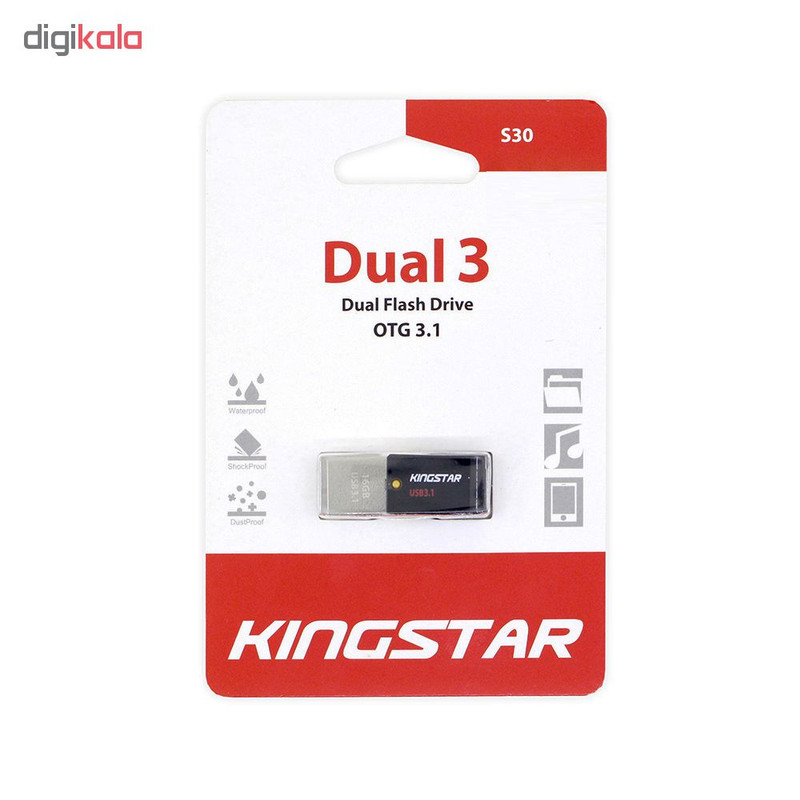 فلشمموری «S30» محصولی از شرکت «کینگ استار» است که از درگاه USB3.0 و MicroUSB برای اتصال به کامپیوتر و موبایل و تبلت بهره میبرد. به یاری درگاه USB 3.1 فلشمموری در این محصول میتوان اطلاعات را با سرعت زیاد انتقال داد. فلشمموری کینگ استار مدل S30 مانند دیگر فلشمموریها فضای زیادی را اشغال نمیکند. به راحتی میتوان این فلشمموری را در جیب لباس خود قرار داده و یا می توان برای اتصال به پخش کننده موسیقی در داخل اتومبیل استفاده کرد. این فلشمموری دارای ظرفیت 64 گیگابایت است که میتواند میزبان بسیار خوبی برای اطلاعات با حجم زیاد باشد از جمله فیلم و سریال و موسیقی. شرکت کینگ استار برای این فلشمموری مقاومت در برابر آب، ضربه و گردوغبار طراحی کرده است. جنس بدنهی این محصول از فلز است که میتواند در برابر ضربه و فشار مقاومت خوبی از خود نشان دهد. این فلشمموری با اکثر سیستمعاملهای رایج از جمله نسخههای مختلف سیستم عامل ویندوز و مک و لینوکس سازگار است.