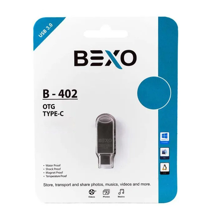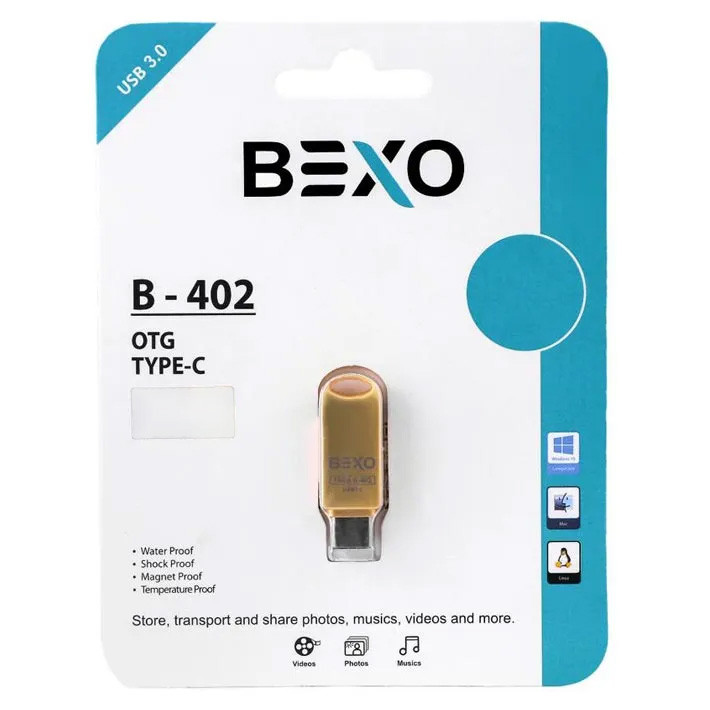 فلش مموری بکسو مدل BEXO B-402 با ظرفیت 64گیگابایت، سرعت فوقالعاده USB 3.0 و درگاه Type-C و OTG، بهترین همراه برای انتقال سریع و بیدردسر فایلهاست. طراحی جمعوجور و مقاوم این فلش، امکان استفاده آسان روی گوشی و لپتاپ را فراهم میکند. با BEXO، همیشه اطلاعاتتان در دسترس و ایمن خواهد بود.