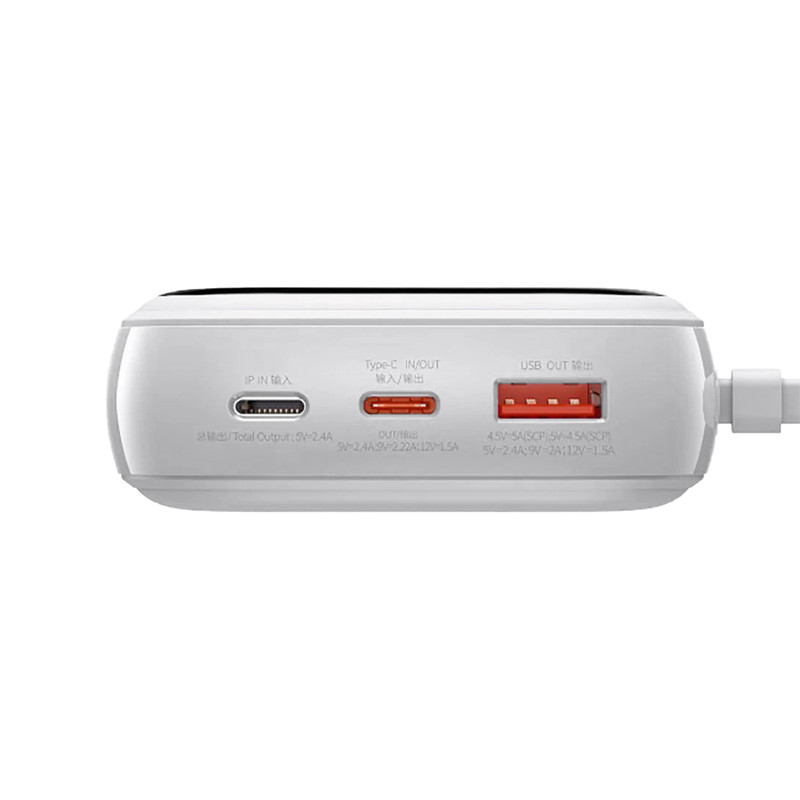 پاوربانک Baseus Qpow Pro PPQD020001 دارای سه خروجی است که یکی آن ها پورت USB بوده و به شما این امکان را می دهد تا بتوانید دو گوشی را با شدت جریان و ولتاژ 5V-3A شارژ کنید. همچنین این پاوربانک دارای 1 پورت تایپ سی است که هم بعنوان ورودی و هم خروجی استفاده می شود. کابل متصل 19 سانتی متری هم با کانکتورآیفونی آخرین خروجی آن به شمار میرود.