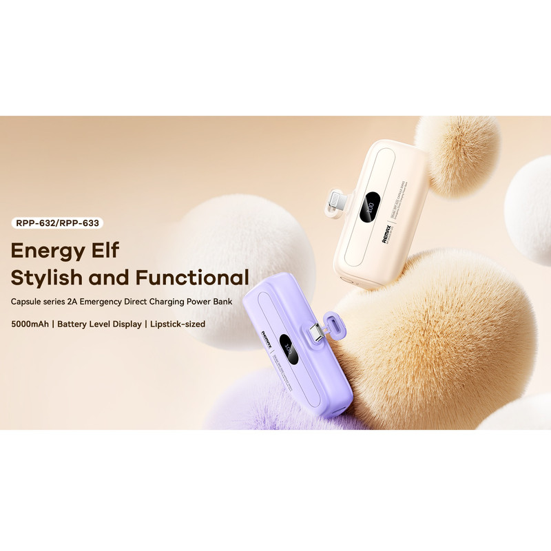 مینی پاوربانک 5000 میلی آمپری ریمکس RPP-632 یک پاوربانک جمع و جور است که مستقیم و بدون نیاز به کابل به گوشی موبایل شما وصل می شود و آن را شارژ می کند. این پاوربانک سایز کوچکی دارد و می توانید به راحتی آن را در کیف، جیب کت و ... حمل کنید و برای کارهای روزمره آن را با خود داشته باشید. سوکت این پاوربانک تایپ سی است و به تمام موبایل هایی که سوکت شارژ تایپ سی دارند می خورد. این مینی پاوربانک دارای نمایشگر درصد باتری است و گوشی های جدید را تقریبا یک بار کامل شارژ می کند. قدرت شارژ آن 10 وات است و می تواند گوشی موبایل شما را با سرعتی نرمال شارژ کند.
