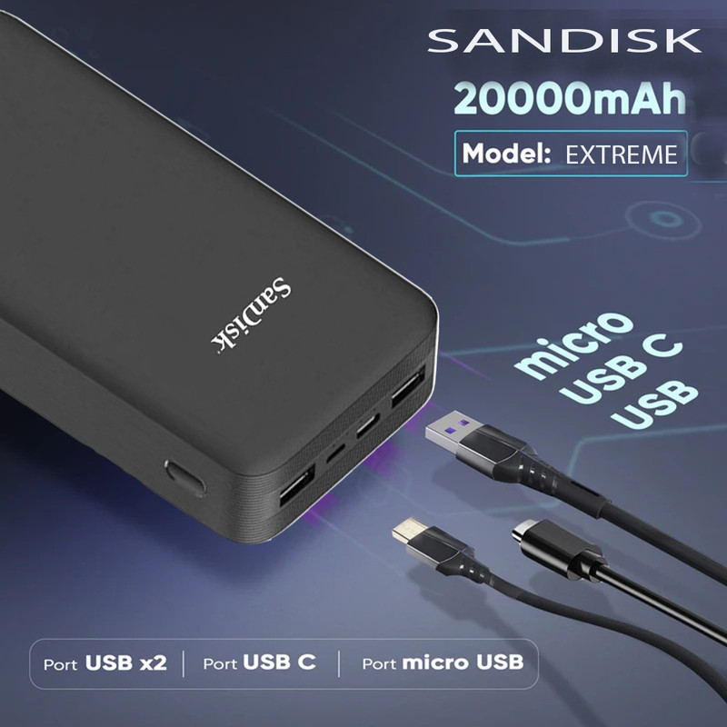 پاوربانک 22.5 وات سن دیسک مدل EXTREME ظرفیت 20000 میلی‌آمپرساعت