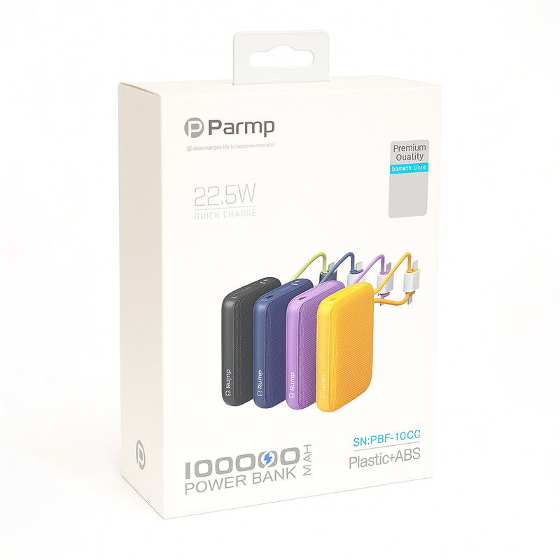 پاوربانک Parmp PBF-10CC با ظرفیت 10000 میلیآمپر ساعت، گزینهای ایدهآل برای شارژ سریع موبایل، تبلت و سایر دستگاههای دیجیتال است. این پاوربانک دارای دو کابل سرخود شامل یک کابل لایتنینگ اپل و یک کابل USB Type-C است و همچنین مجهز به یک پورت USB Type-C ورودی/خروجی میباشد که هم برای شارژ پاوربانک و هم برای شارژ دستگاههای شما قابل استفاده است. طراحی سبک، خوشدست و مدرن آن همراه با رنگهای شاد و جذاب، تجربهای راحت و لذتبخش از حمل و استفاده را فراهم میکند. با توان خروجی 22.5 وات و باتری لیتیوم پلیمری با بیش از 500 چرخه شارژ، شارژ سریع و ایمن دستگاههای شما تضمین میشود. مدار هوشمند داخلی عملکرد مطمئن را فراهم میآورد و با استانداردهای CE، FCC و RoHS مطابقت دارد. این پاوربانک جمعوجور و خوشدست، انتخابی مناسب و جذاب برای استفاده روزمره است.