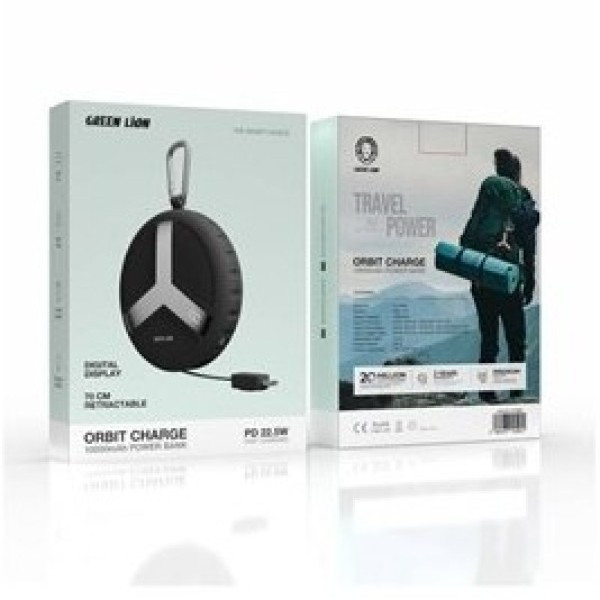 امروزه استفاده از گوشی همراه به یکی از ارکان زندگی ما تبدیل شده است. در نتیجه اینکه گوشی ما همیشه شارژ داشته و قابل استفاده باشد نیز اهمیت دو چندانی پیدا کرده است. همین مساله باعث شده پاوربانک این روزها از ضروری ترین وسایل همراه ما به حساب می آیند. شرکت گرین لاین تلاش کرده با تولید پاوربانک 10000 گرین لاین Green Lion Orbit Charge GNORCH10PBBK توان 22.5 وات همراه با کابل متصل نیاز ما را در حوزه گوشی را رفع کند. با معرفی این محصول همراه ما باشید.پاوربانک Green Lion Orbit Charge دارای ظرفیت اسمی به اندازه 10000 میلی آمپرساعت است. البته حتما در نظر داشته باشید ظرفیت اسمی با توجه به ولتاژ شارژ گوشی شما تغییر می کند. ابعاد این پاوربانک 37*133*183 میلی متر بوده و وزن آن 236 گرم است.این پاوربانک به شکل دایرهای طراحی شده و در بالای آن یک گیره قرار گرفته که حملونقل آن را ساده میکند. برای اطلاع از میزان شارژ پاوربانک گرین لاین Orbit Charge یک نشانگر LED بر روی بدنه آن در نظر گرفته شده که میزان شارژ باقی مانده را به شما نمایش می دهد. توان پاوربانک گرین لاین Orbit Charge برابر با 22.5 وات است؛ این پاوربانک دارای 1 کابل متصل و 1 درگاه است