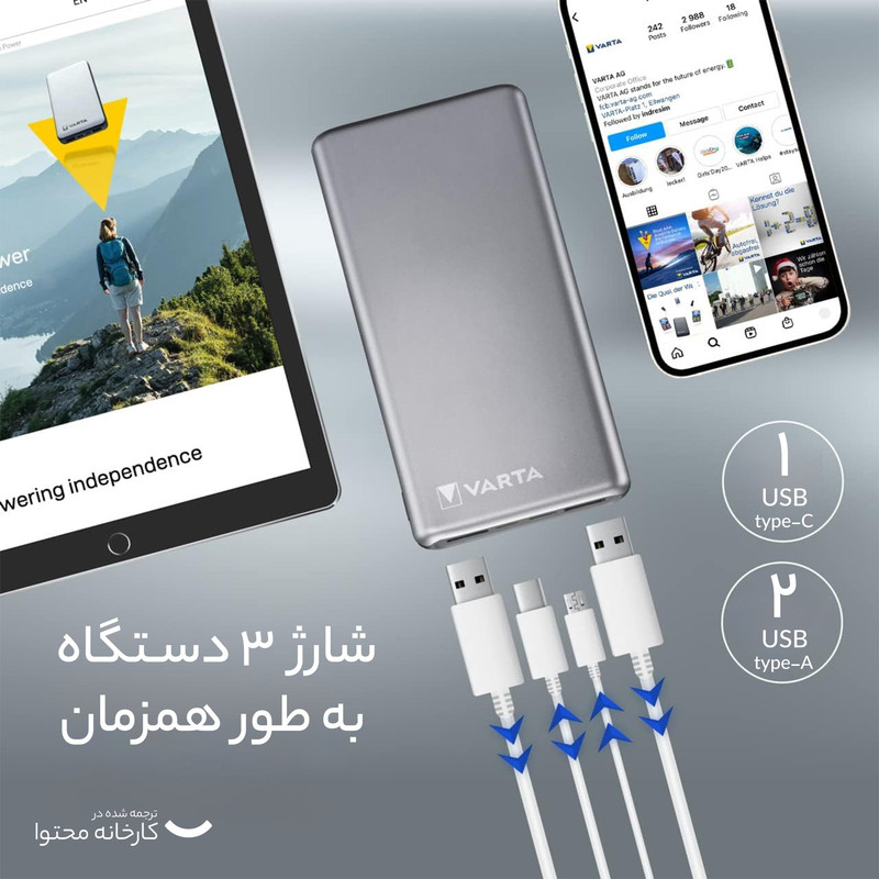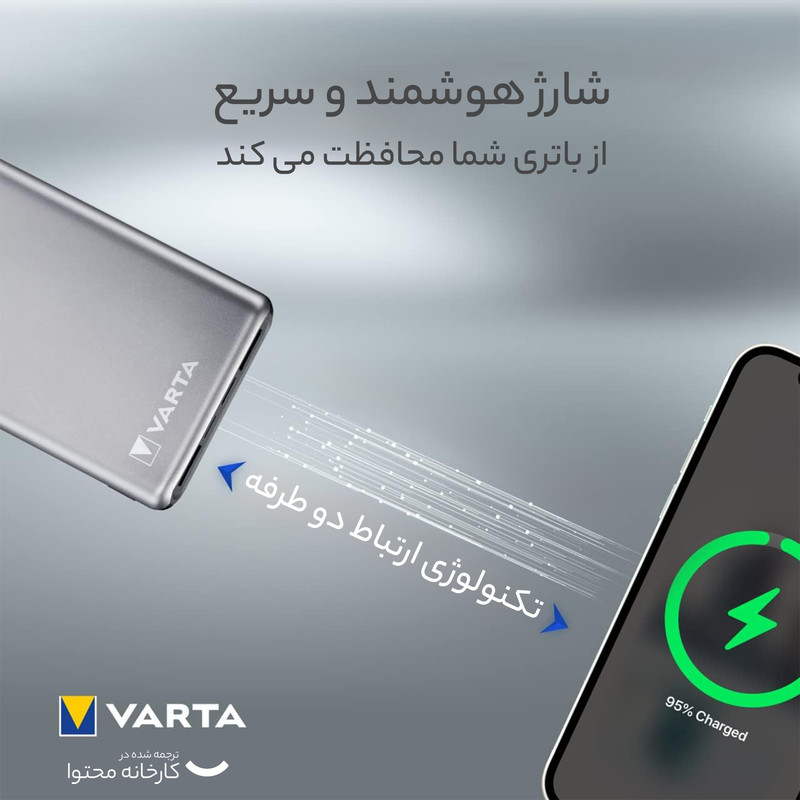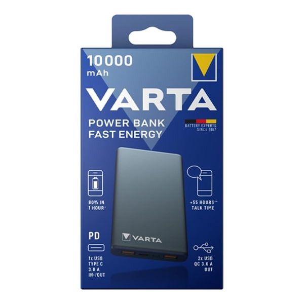 پاوربانک فست شارژ وارتا Energy 10000 ساخت کشور آلمان یکی از سه پاور بانک فست شارژ وارتا است که با ظرفیت 10000 میلی آمپر ساعت دارای کاربردهای متنوع بوده و پاسخگوی بسیاری از نیازهای روزمره کاربران می باشد. این پاور بانک از تجهیزات هوشمند پشتیبانی میکند و در مقایسه با مدل های متداول به میزان 20 درصد سرعت شارژ بیشتری دارد.