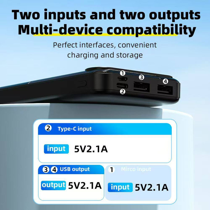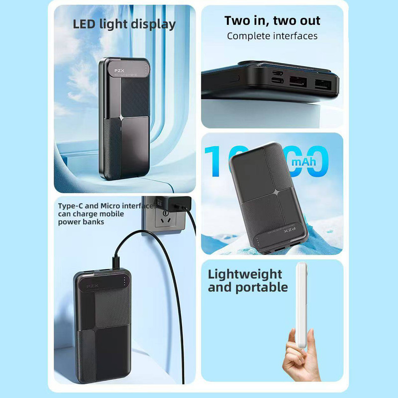 پاوربانک PZX مدل V02 با ظرفیت 10000 میلیآمپر ساعت یک منبع انرژی همراه سبک و خوشدست است که با طراحی کلاسیک و استاندارد ورود به کابین هواپیما برای استفاده روزمره و سفر گزینهای ایدهآل محسوب میشود. این پاوربانک از طریق درگاه تایپسی با قابلیت فست شارژ شارژ میشود و علاوه بر آن ورودی میکرو USB نیز دارد. دو خروجی USB برای شارژ همزمان دو دستگاه در نظر گرفته شده و وجود چهار چراغ LED امکان اطلاع از میزان شارژ باقیمانده را فراهم میکند. ظرفیت مناسب، خوشدست و سبک، شارژ سریع خود پاوربانک و طراحی کلاسیک این محصول را به انتخابی مطمئن برای دانشجویان، کارمندان و مسافران تبدیل کرده است.