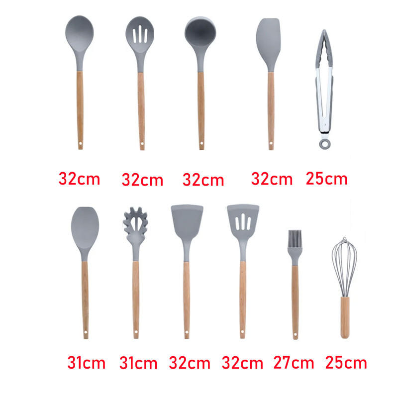 شامل: کفگیر برنج , کفگیر پختوپز , ملاقه , همزن , کفگیر کیک , قاشق سالاد , قاشق پختوپز , انبر