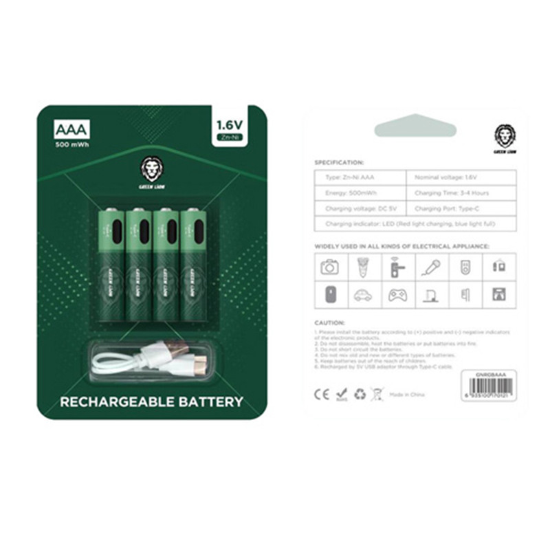درون بسته بندی این محصول 4 عدد باتری تایپ Zn-Ni AAA با انرژی 500mWh قرار دارد که از توانایی شارژ مجدد بهره می برند و میتوان با کابل Type-c موجود درون بسته بندی آنها را شارژ کرد.