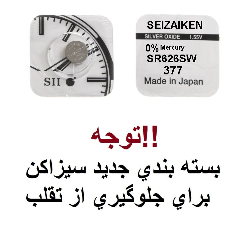 باتری سلولی دکمه ای اکسید نقره ای Seizaiken SR626SW 377 1.55v سازگار است با 626 ، Seiko: SR626 ، 377 وبا مشخصات خروجی: 1.55 ولت DC و کاربرد آن در دوربینها، ماشینحسابها، ساعتها، اسباببازیها، دستگاههای بهداشتی خانگی (نمایشگر گلوکز، کافهای فشار خون و دماسنجهای دیجیتالی گوش)، رایانهها، کتابهای صوتی، بازیها، اسباببازیها و موارد دیگر استفاده میشوند.