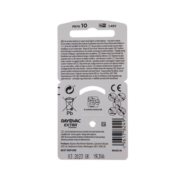 سمعکها مانند بسیار از وسایل الکترونیکی دیگر برای این که بتواند بهدرستی کار کند، به یک باتری مناسب نیاز دارد. این باتری ها انواع مختلفی دارند که از فنّاوریهای گوناگونی بهره میبرند. همچنین این باتریها دارای سایزهای مختلفی هستند که متناسب با سمعکها تولید میشوند. باتری سمعک کد 10 محصولی از برند «ریوواک» (Rayovac) است که با سایز 10 تولید شده است. معمولاً این نوع از باتریها با رنگ زرد نمایش داده میشوند. این باتری از نوع غیر قابل شارژ است و در پکهای 6 عددی به بازار عرضه شده است. در این باتری ها از مواد سمی مانند جیوه استفاده نشده است. فناوری استفاده شده در این باتریها از نوع روی-هوا است که با قرار گرفتن در معرض هوا فعال میشود؛ ازاینرو، شرکت سازنده یک برچسب پلاستیکی پشت باتری قرار میدهد که باعث میشود باتری در حالت غیر فعال باقی بماند. گفتنی است این محصول دارای گواهینامه CE است.