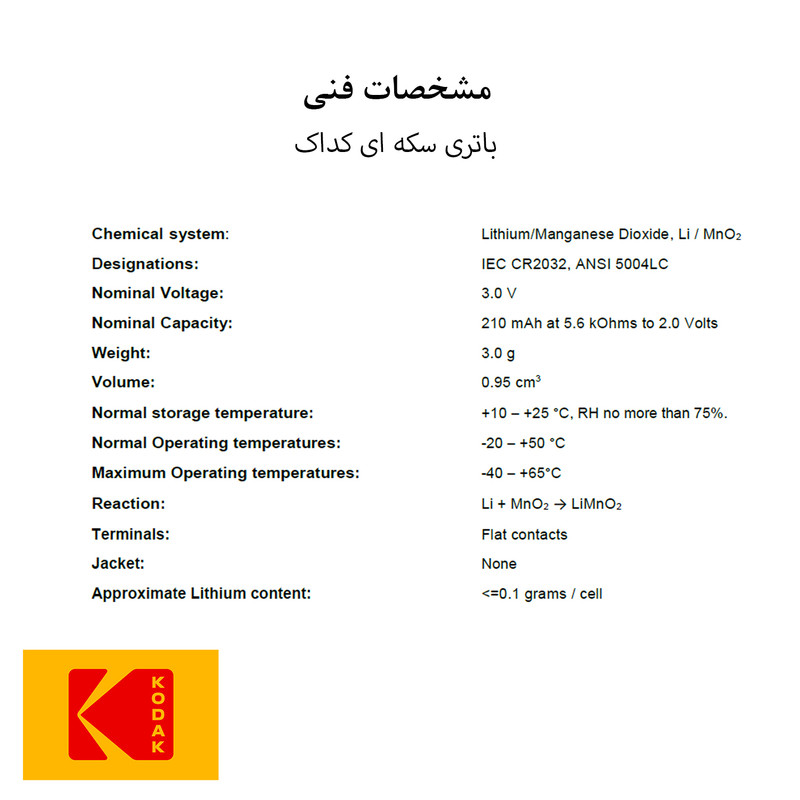 باتری سکه ای کداک مدل CR2032