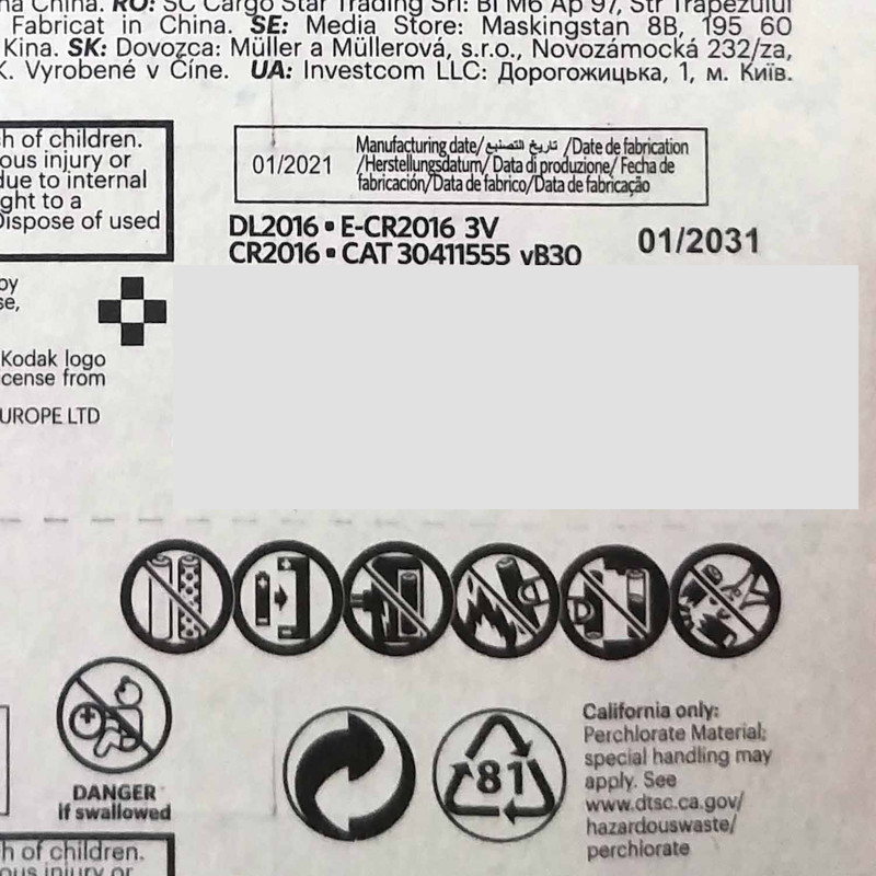 باتری سکه ای کداک مدل 2016 بسته 5 عددی