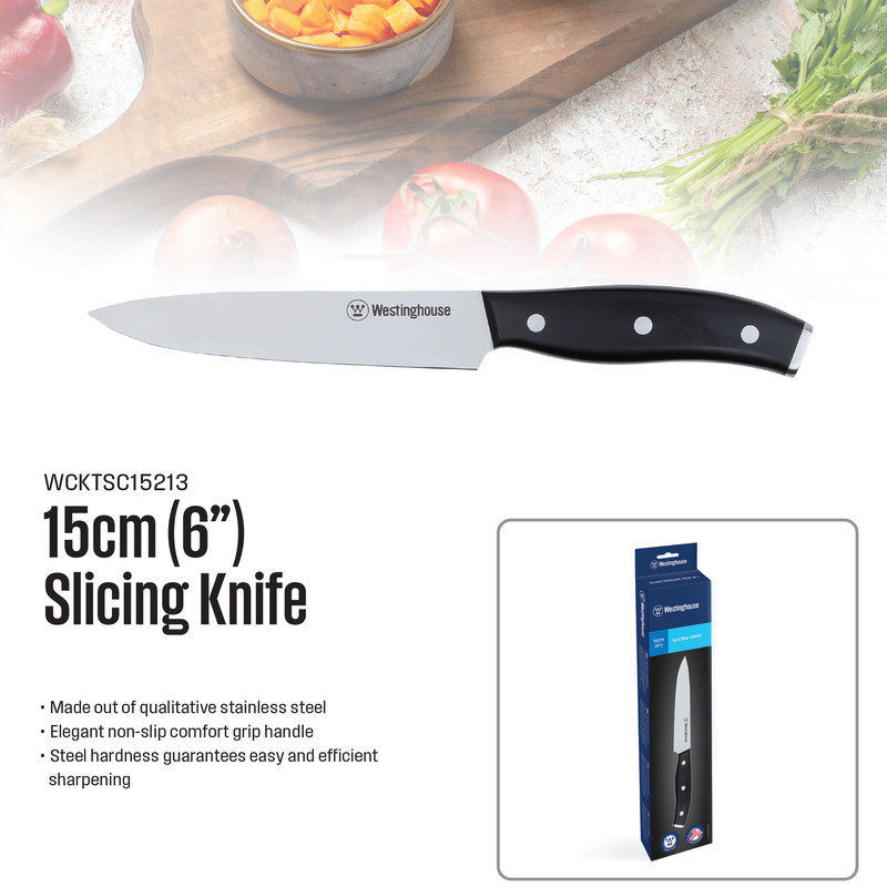 چاقوی برش (Slicing Knife) وستینگهاوس مدل WCKTSC15213 با تیغه ۱۵ سانتیمتری، یک ابزار تخصصی برای برشهای طولی و تمیز روی گوشت، مرغ، ماهی و حتی کیک و دسر است. اگر بهدنبال چاقویی هستید که بتواند برشهای باریک و یکنواخت روی انواع خوراکیها ایجاد کند، این مدل از سری استیل وستینگهاوس انتخابی بسیار مناسب است. در مشخصات این مدل ذکر شده که تیغه از استیل 3Cr13 ساخته شده و ضخامت آن حدود ۲٫۵ میلیمتر است؛ ترکیبی که بین استحکام، انعطاف و قابلیت تیز شدن مجدد تعادل خوبی ایجاد میکند.