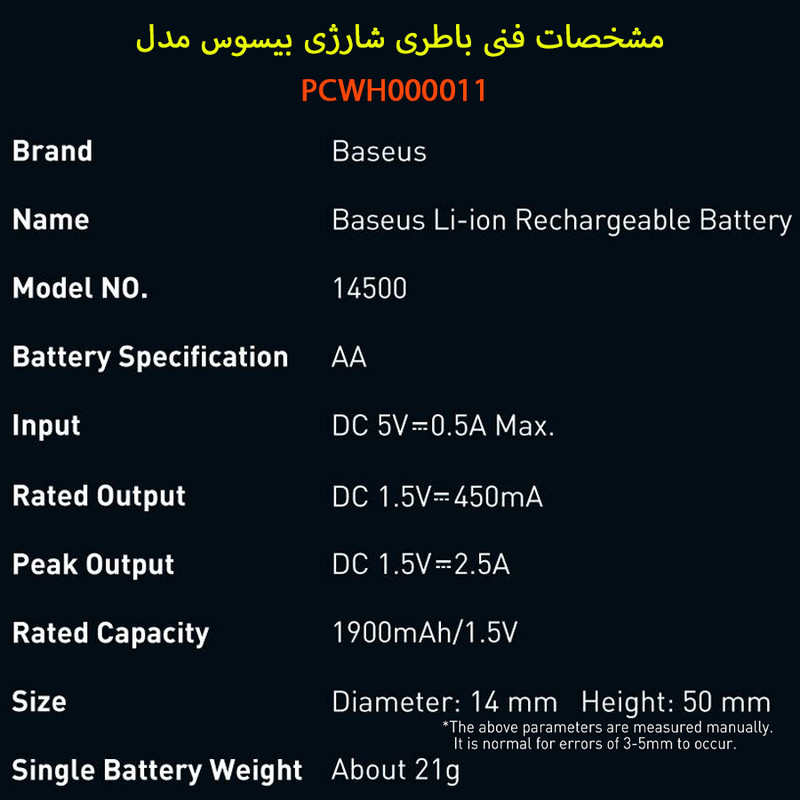 باتری قلمی قابل شارژ بیسوس مدل PCWH000011 بسته دو عددی