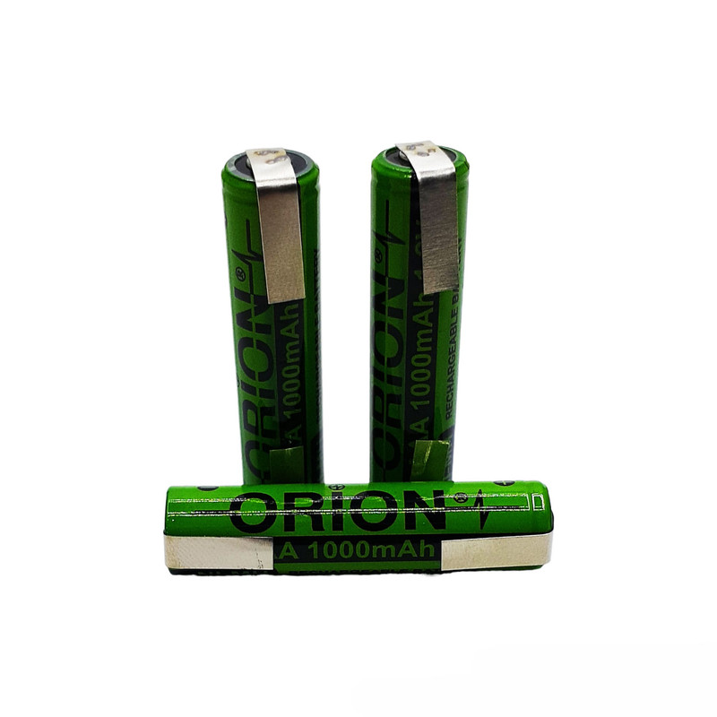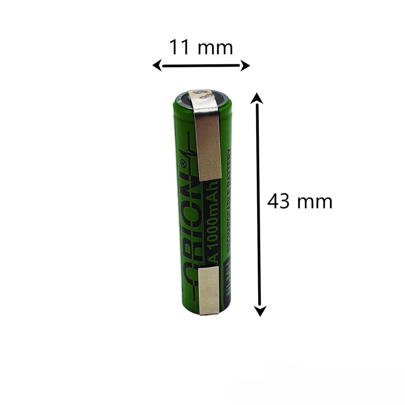 باتری نیم قلمی قابل شارژ اوریون مدل AAA 1000mAh مناسب برای انواع چراغ قوه ها ، ریش تراش ، شوکر های برقی ، اسپیکر شارژی ، چراغ های اضطراری و .... است . این باتری از برند اوریون می باشد .این باتری ب صورت دو سر پلت تهیه شده که جهت سهولت در لحیم کاری مورد استفاده قرار میگیرد.