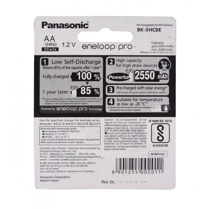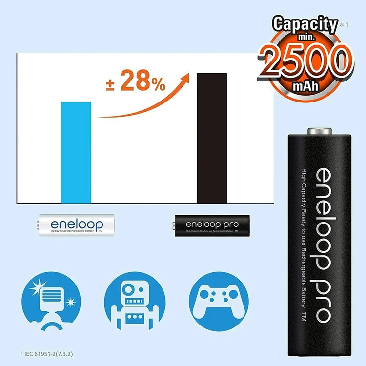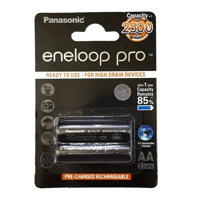 باتری قلمی قابل شارژ پاناسونیک مدل Eneloop Pro BK-3HCDE بسته 2 عددی