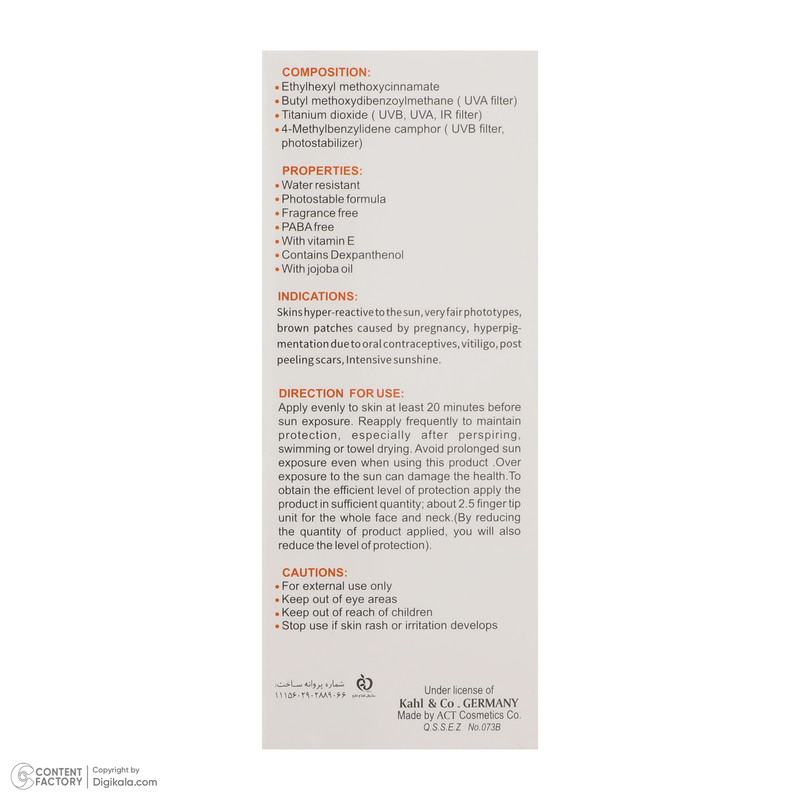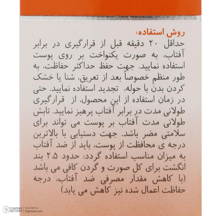 حجم ضد آفتاب : 50 میلیلیتر