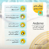 ویژگیهای ضدآفتاب : ضد آب , محافظت کننده در برابر اشعه UVA , محافظت کننده در برابر اشعه UVB , ضد حساسیت , مرطوب کننده