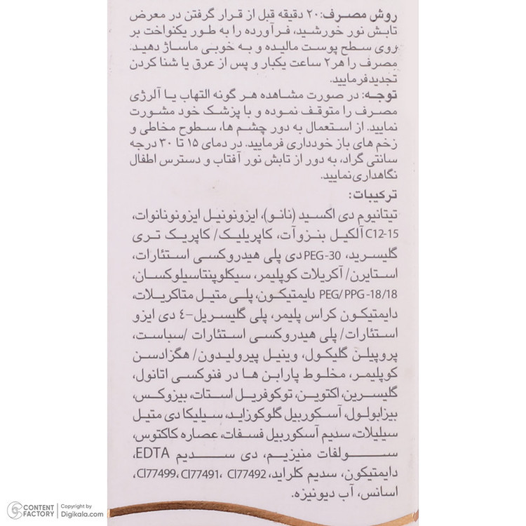 ترکیبات : گلیسیرین , ویتامین E , تیتانیوم دی اکساید
