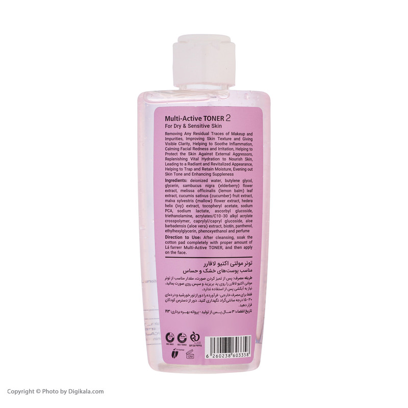 تونر پاک کننده صورت لافارر مدل مولتی اکتیو مناسب پوست های خشک و حساس حجم 170 میلی لیتر