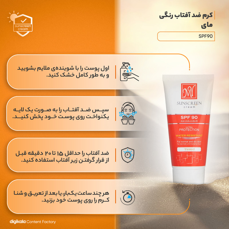کرم ضدآفتاب رنگی مای با تنالیته رنگ متوسط و مزایای مراقبت پوستی متعدد، یک انتخاب بینظیر برای محافظت، تغذیه و زیبایی پوست شماست. این کرم با SPF 90 و ماندگاری 2 ساعته، به طور موثری از پوست صورت شما در برابر اشعههای مضر UVA و UVB محافظت و با ویژگیهای منحصربهفرد خود به حفظ سلامت و جوانی پوست کمک میکند. این محصول با حجم 50 میلیلیتر، مناسب برای استفاده روزانه است و به راحتی قابل حمل است. ویژگی رنگی بودن این کرم، ظاهری طبیعی و یکنواخت به پوست شما میبخشد و میتواند به عنوان یک پایه آرایشی مناسب برای پوستهای با رنگ متوسط عمل کند.