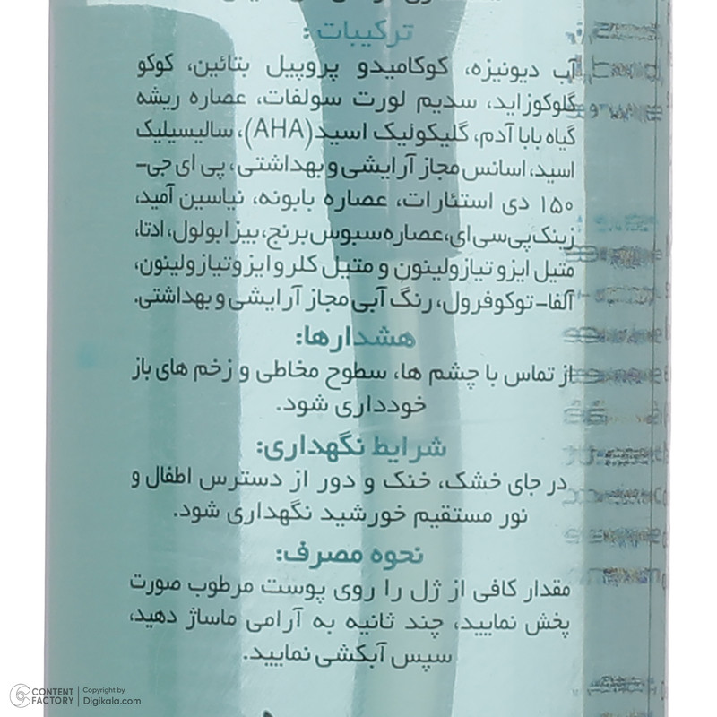 دستهبندی: پاک کننده آرایش صورتحجم: 250 میلیلیتروزن: 260 گرمسازگار با نوع پوست: آکنهایکشور مبدا برند: ایرانشماره مجوز : 34/ظ/2265صادرکننده مجوز : سازمان غذا و داروراهنمای استفاده : محصول در محیط خشک و خنک (دمای کمتر از 30 درجه سانتی گراد) و دور ا زتابش مستقیم نور و حرارت نگهداری شود. دور از دید و دسترس کودکان نگهداری شود.نوع پاک کننده آرایش صورت : ژلنمایش بیشتر