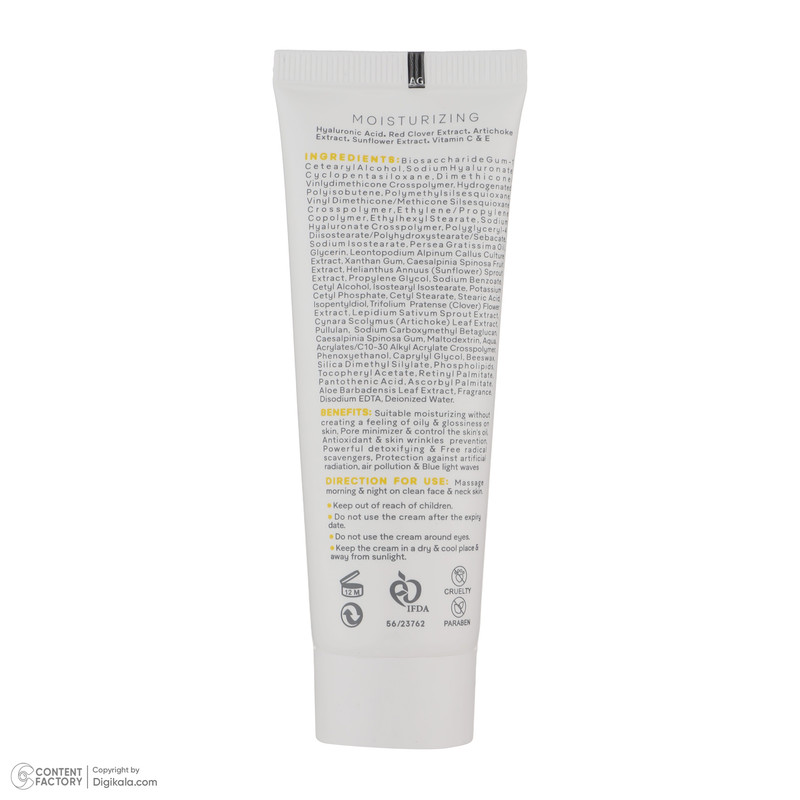 دستهبندی: کرم آبرسان و مرطوب کنندهناحیه استفاده: صورت , گردننوع محصول: نرم کنندهحجم: 50 میلیلیتروزن: 40 گرمکشور مبدا برند : ایرانشماره مجوز : 56/23762سازگار با پوستهای : چرب , مختلطصادرکننده مجوز : سازمان غذا و داروسایر توضیحات : حاوی هیالورونیک اسید، عصاره شبدر قرمز، عصاره آرتیشو، عصاره آفتابگردان، ویتامین E و Cعصارههای موجود : فاقد عصارهنمایش بیشتر