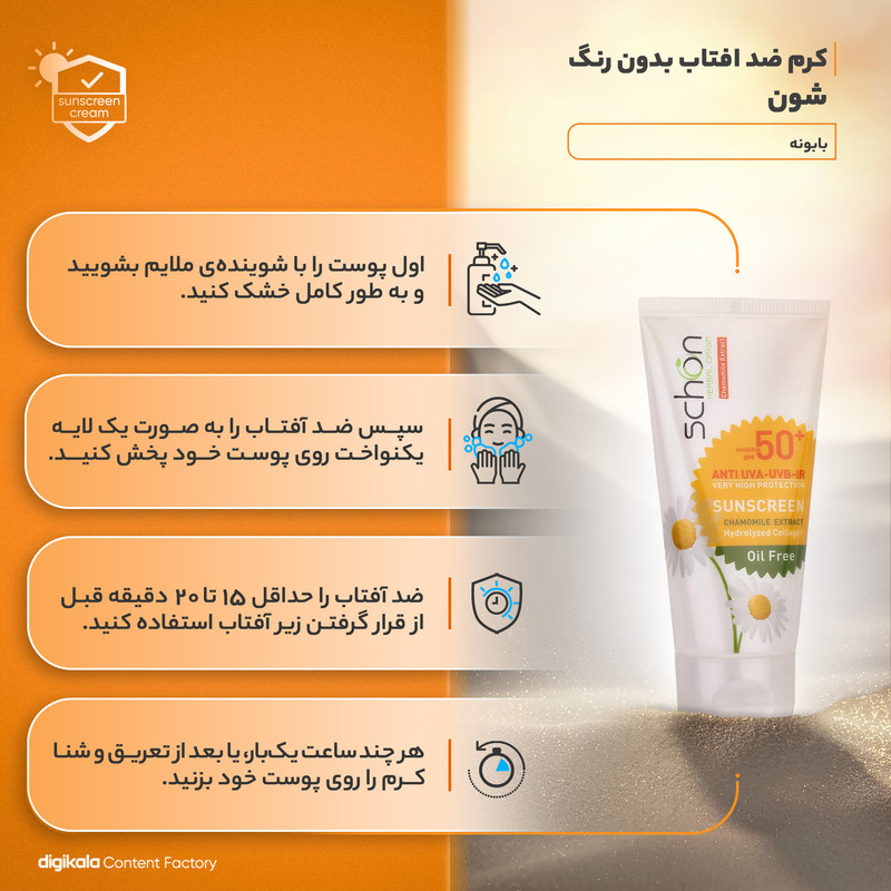 کرم ضدآفتاب شون با SPF 50 و ترکیبات مغذی خود، یک انتخاب عالی برای کسانی است که به دنبال محافظتی قوی و مراقبت جامع از پوست خود در برابر اشعههای مضر خورشید هستند. با ویژگیهای منحصربهفرداز جمله فرمولاسیون فاقد چربی، بدون رنگ بودن و ترکیبات آرامبخش، این کرم نیازهای مختلف پوستی شما را برآورده میسازد. اگر به دنبال محصولی هستید که نه تنها از پوست شما محافظت کند، بلکه به سلامت و زیبایی آن نیز کمک کند، کرم ضدآفتاب شون گزینهای است که باید امتحان کنید. عصاره بابونه یکی از ترکیبات کلیدی این کرم است. بابونه با خواص ضد التهابی و آرامبخش خود به تسکین پوست و کاهش التهابها کمک میکند. این ویژگیها باعث میشوند که پوست شما پس از استفاده از کرم ضدآفتاب شون، نرم و آرام بماند و به حفظ سلامت و زیبایی آن افزوده شود.