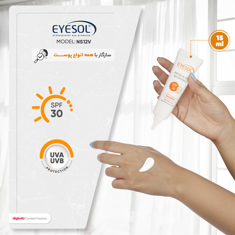 کرم ضدآفتاب دور چشم آیسول با SPF 30، یک محصول بینظیر برای حفاظت از ناحیه حساس دور چشم در برابر اشعههای مضر خورشید است. این کرم با فرمولاسیون فیزیکی و فاقد پارابن، برای همه انواع پوست مناسب بوده و به ویژه برای افرادی که به دنبال یک محصول ملایم و ایمن برای دور چشم خود هستند، توصیه میشود.
