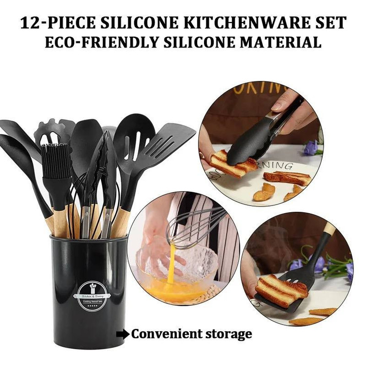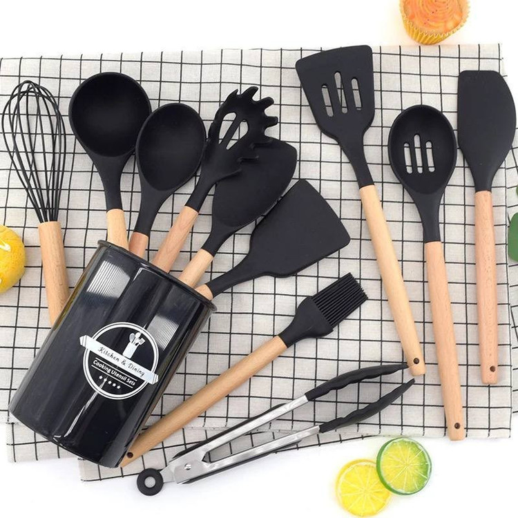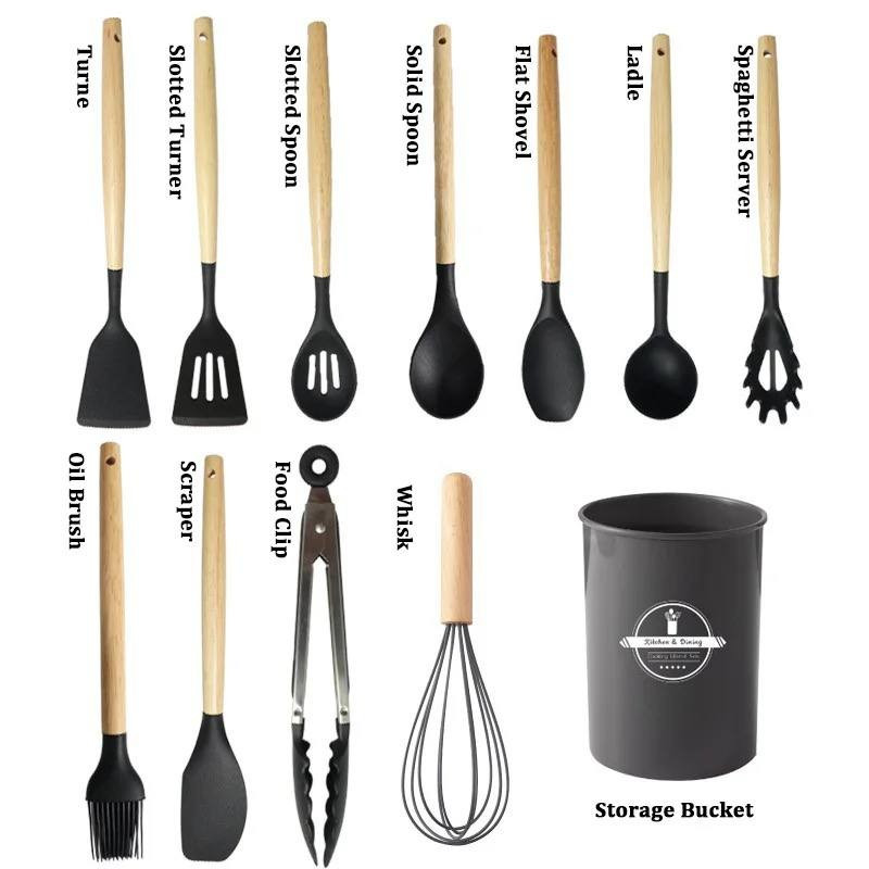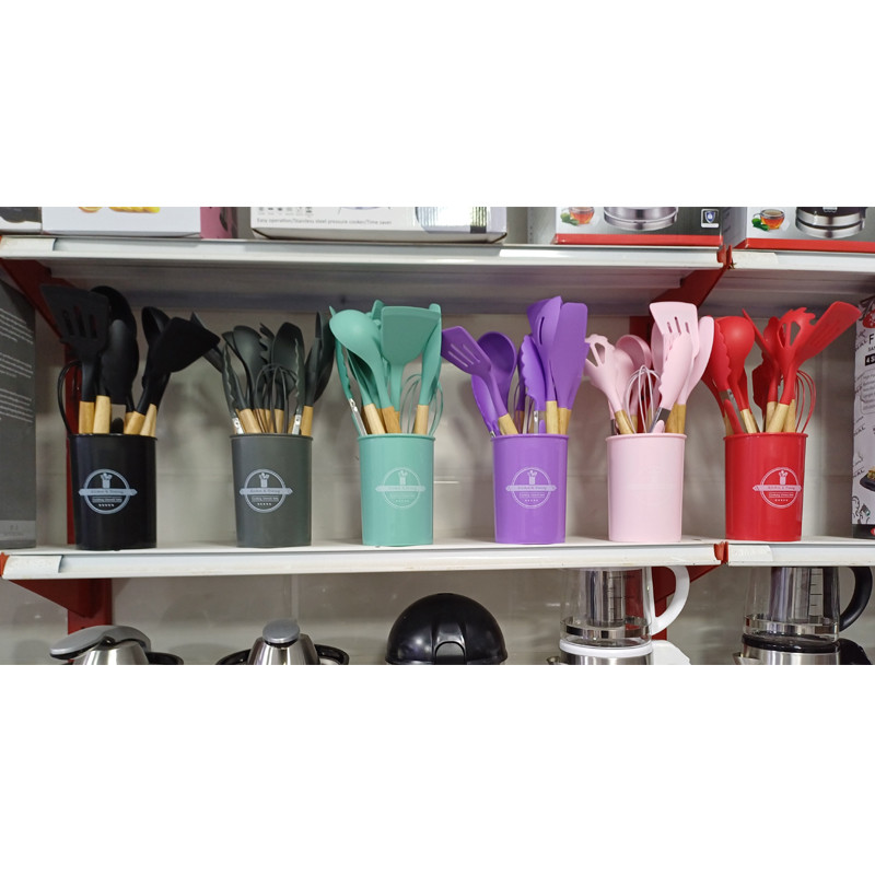 شامل: کفگیر برنج , کفگیر پختوپز , چنگال پختوپز , ملاقه , همزن , کفگیر کیک , قاشق سالاد , چنگال سالاد , قاشق پختوپز , انبر