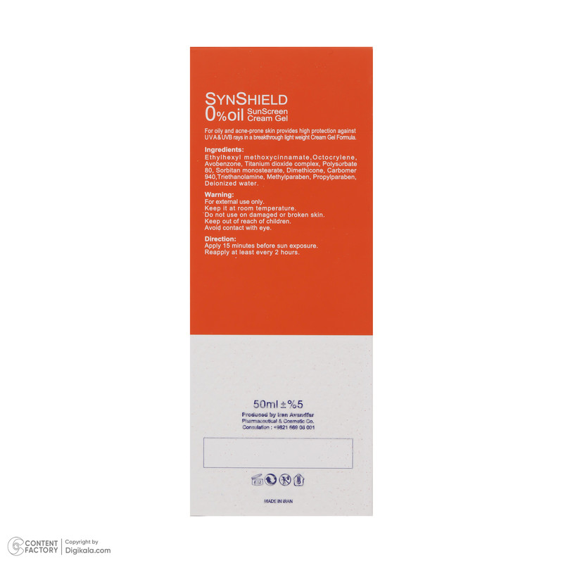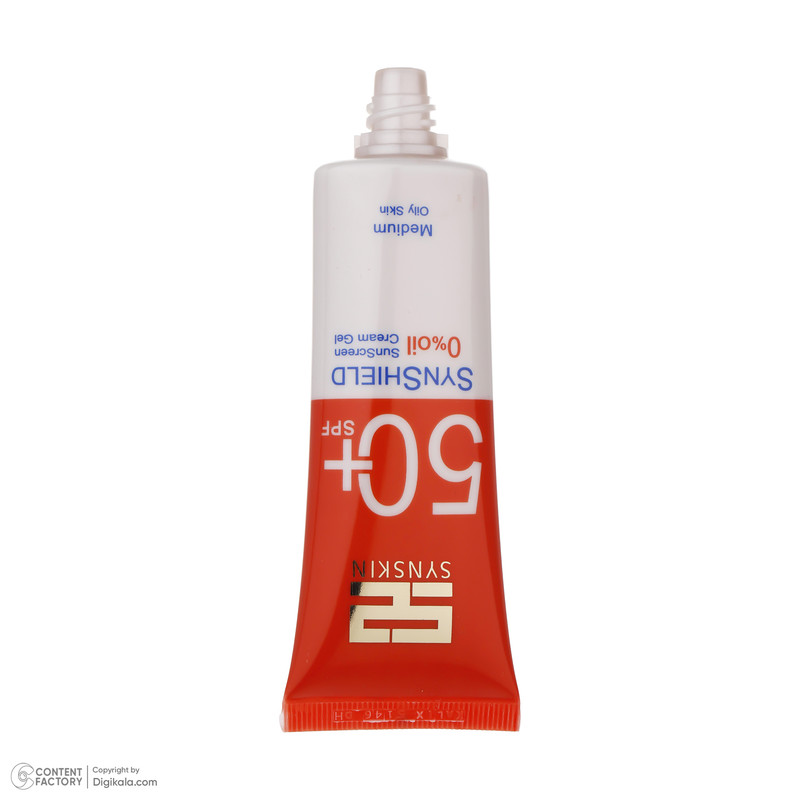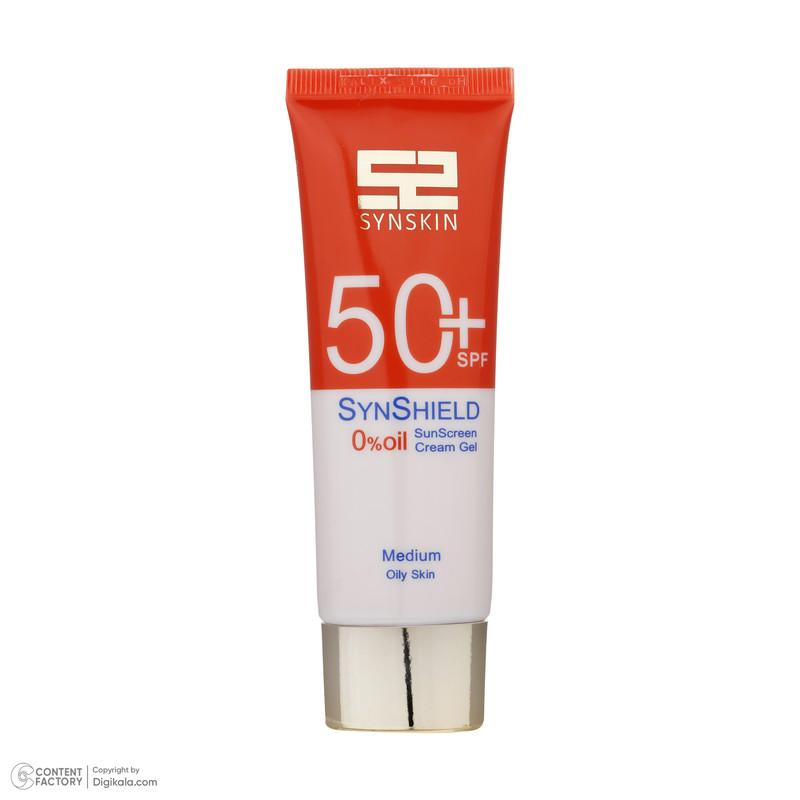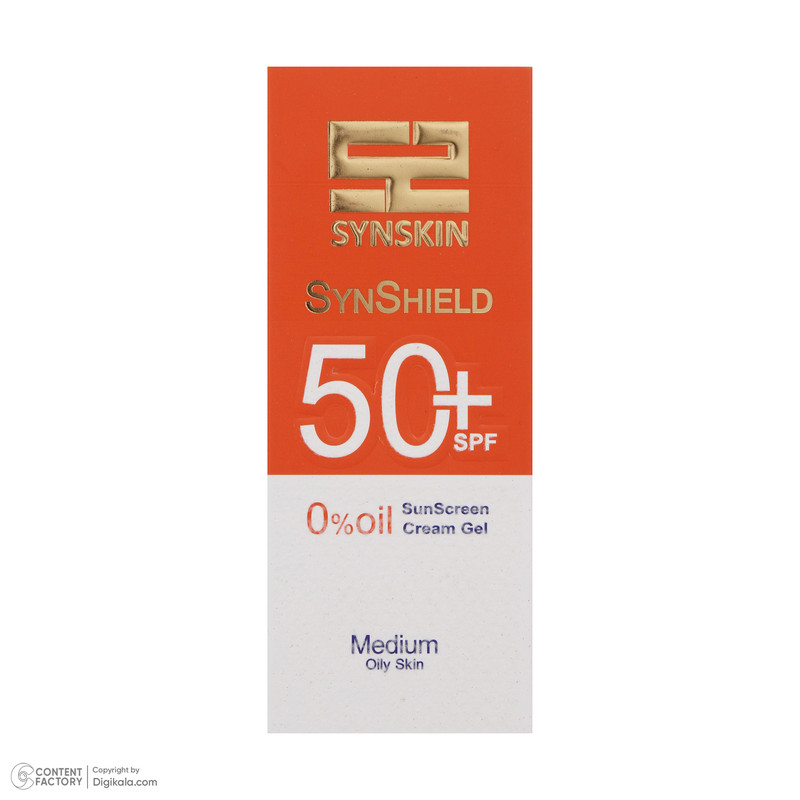ژل کرم ضدآفتاب spf50 فاقد چربی ساین اسکین مدیوم 50 میلی لیتر Synskin Synshield SPF50 Sunscreen Cream For Oily Skin medium 50ml، مناسب پوست چرب، دارای بافت بسیار سبک و فاقد چربی می باشد. با پخش پذیری بسیار بالا و جذب سریع در زمان مصرف روی پوست حس مطلوبی را برای شما ایجاد مینماید. کرم ژل ضدآفتاب ساین شیلد SPF50 ساین اسکین، با بهره گیری از فاکتور حفاظتی SPF50 از پوست در برابر پرتوهای مضر خورشید از جمله UVB محافظت کرده، به علاوه با استفاده از فیلترهای UVA تا میزان چشمگیری از نفوذ موجهای نور خورشید به پوست ممانعت به عمل می آورد. به دلیل رنگی بودن این محصول به صاف و یکدست شدن پوست نیز کمک می کند.