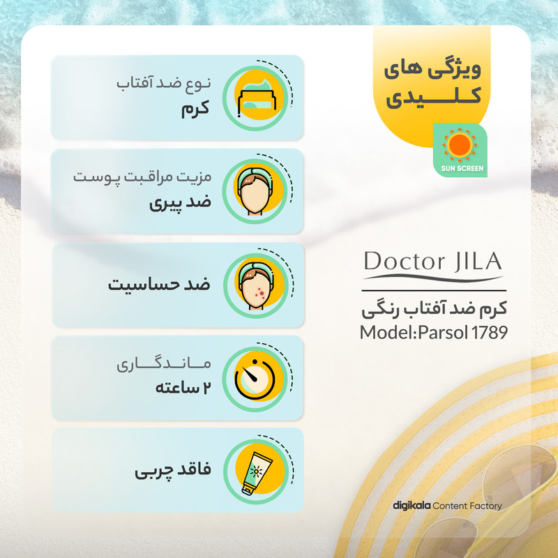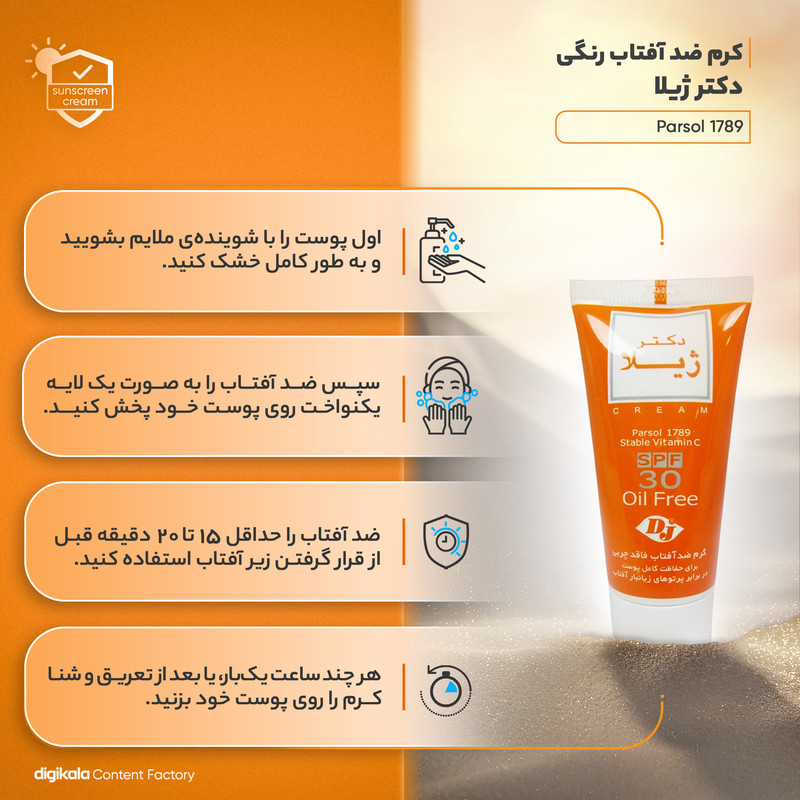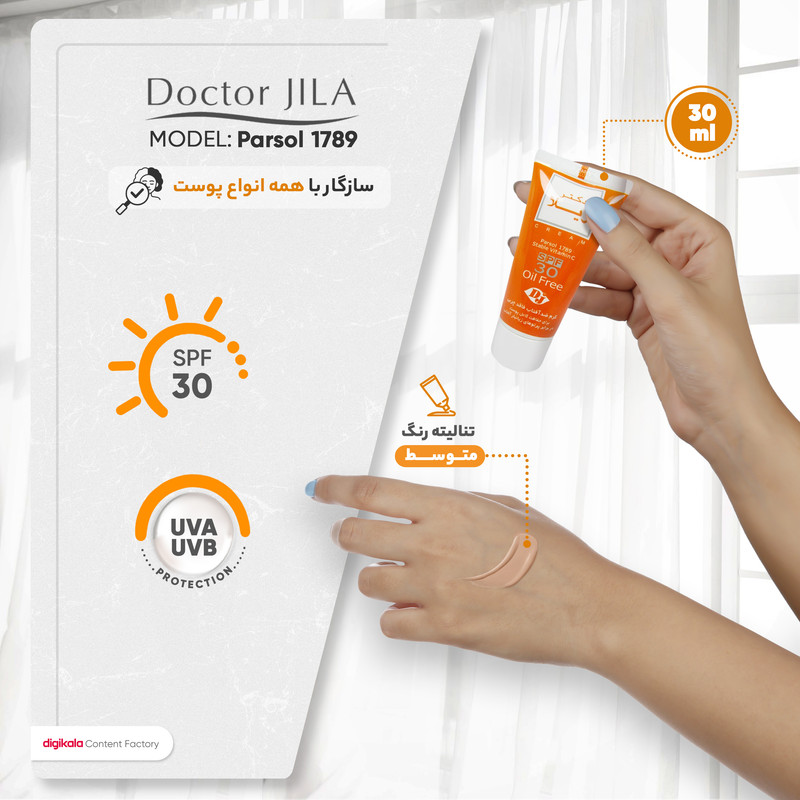 کرم ضد آفتاب رنگی دکتر ژیلا Spf30 مدل Parsol 1789 محافظ UVA ،UVB، ضد پیری، ضد حساسیت، مناسب انواع پوست حجم 30 گرم