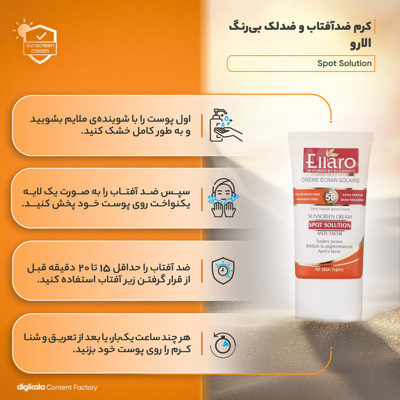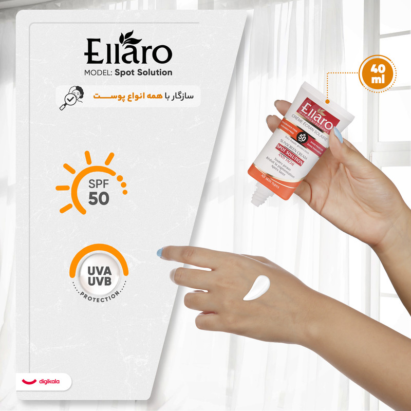 کرم ضد آفتاب و ضد لک بدون رنگ الارو SPF50 مدل Spot Solution محافظ UVA ،UVB، مناسب انواع پوست تحت لیسانس حجم 40 میلی‌لیتر