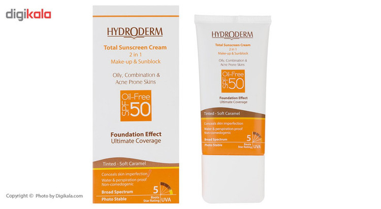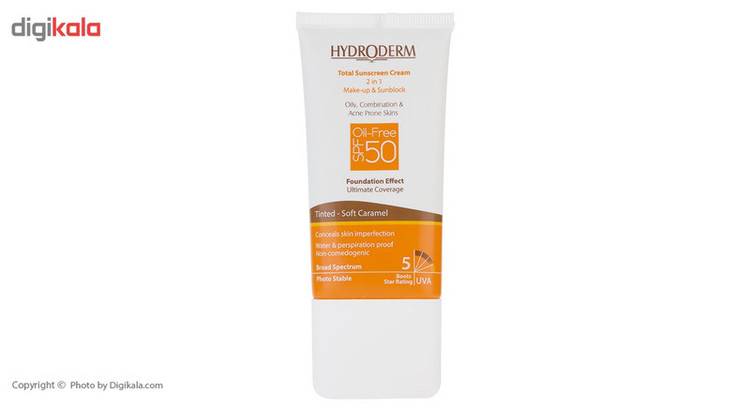 ضد آفتاب کرم پودر از برند «هیدرودرم» (Hydroderm) با رنگ «کاراملی» (Caramel)، انتخاب مناسبی برای افرادی با پوست متوسط و گندمگون است. این ضد آفتاب بسیار مناسب برای پوستهای چرب، ترکیبی و جوشدار است. ترکیبات آن فاقد چربی بوده و ساختاری سیلیکونی و نرم دارد. این ضد آفتاب با SPF50 و دارا بودن پنج ستاره در سیستم اندازهگیری فیلتر آفتاب، یک محافظ عالی برای پوست در برابر اشعههای مضر خورشید (UVA , UVB) است. ضد آفتاب هیدرودرم علاوهبر محافظت طولانی مدت از پوست در برابر آفتاب، پوششی ابریشمی و یکسان روی پوست ایجاد میکند. پوشش این کرم به عنوان پایه آرایش هم مناسب است. دیگر ویژگی خوب این کرم، دارا بودن مقاومت خوب در برابر تعریق و شستوشو است. ضد آفتاب هیدرودرم با رنگ کاراملی انتخاب خوبی برای قرارگیری طولانی در آفتاب است.