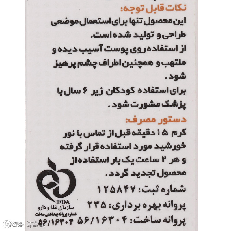 کرم ضد آفتاب مولتی پروتکشن ⁺SPF50 دکتر ژیلا با ایجاد محافظت سه گانه در مقابل پرتوهای نور خورشید، پیری زودرس پوست و همچنین آلودگی های محیطی، نقش مهمی در حفظ جوانی و شادابی پوست ایفا می کند. این کرم علاوه بر جاذب های فیزیکی و شیمیایی گوناگون، حاوی ترکیباتی می باشد که از طریق تاثیر بر روی مسیرهای داخل سلولی، از اثرات مخرب پرتوهای فرا بنفش و آلودگی های محیطی بر روی سلول های پوست جلوگیری می کند. این محصول به علت دارا بودن مجموعه ای از آنتی اکسیدان های قوی، دارای خواص ضد چروک نیز می باشد. نوع بی رنگ این کرم برای استفاده آقایان نیز مناسب است.