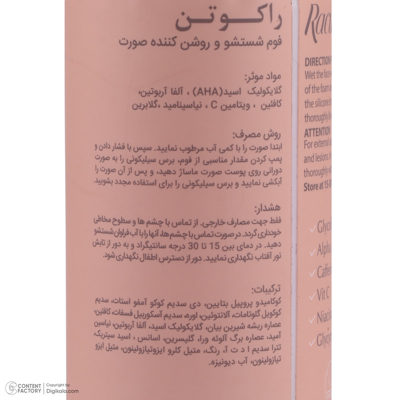 فوم شستشو و روشن کننده صورت راکوتن یک محصول بسیار پیشرفته و موثر است که با ترکیبات خاص و منحصر به فرد خود، به آرامی پوست را از چربیهای اضافی، آلودگیهای محیطی و باقیماندههای مواد آرایشی پاکسازی میکند. این فوم، علاوه بر پاکسازی عمیق، به بهبود گردش خون در پوست کمک کرده و باعث میشود پوستی روشنتر و با طراوتتر داشته باشید.