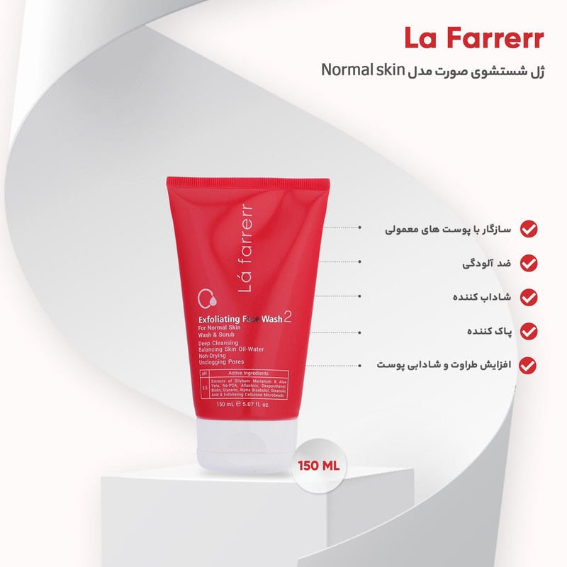 ژل شستشو و لایه بردار صورت لافارر مدل 02 مناسب پوست های معمولی حجم 150 میلی لیتر