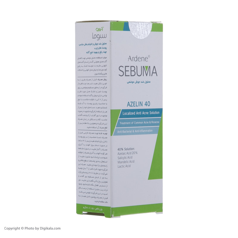 محلول ضدجوش آزلین سبوما AZELIN 40مناسب جهت پوست های چرب و دارای آکنهبهبود آکنه های التهابی ملایم تا متوسط ، کمک به رفع کومدون ها و جوش های التهابی و اختلال هایپرپیگمنتاسیون که در نتیجه استفاده از این محصول لایه شاخی و فرسوده پوست حذف شده ، جوش های سرسیاه و سرسفید کاهش یلفته و ترشح چربی پوست تنظیم و منجر به کاهش لک و تیرگی پوست میگردد.