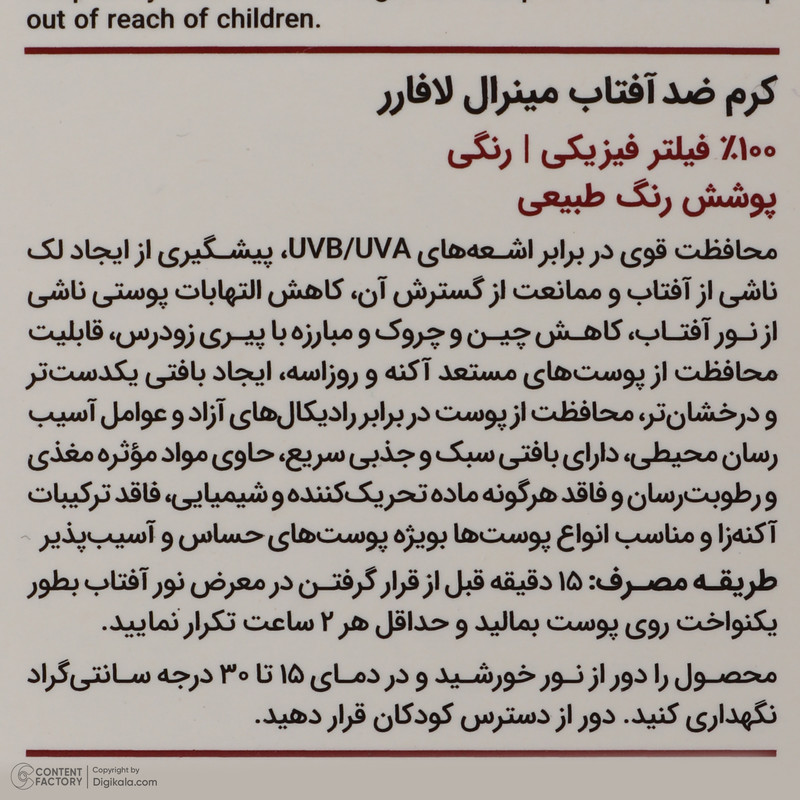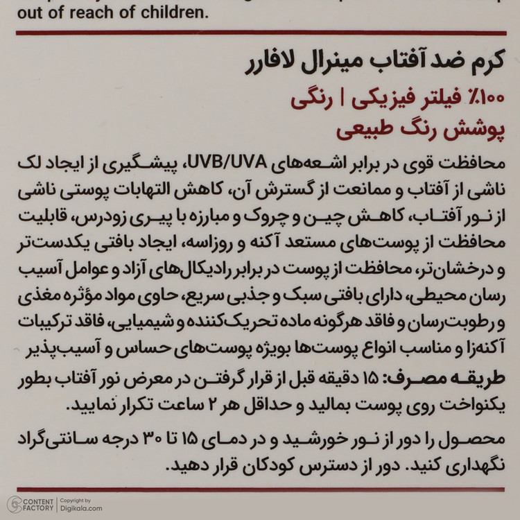 راهنمای استفاده : پنج دقیقه قبل از قرار گرفتن در معرض نور خورشید از این کرم استفاده کنید و حداقل هر 2 ساعت یکبار تمدید کنید.