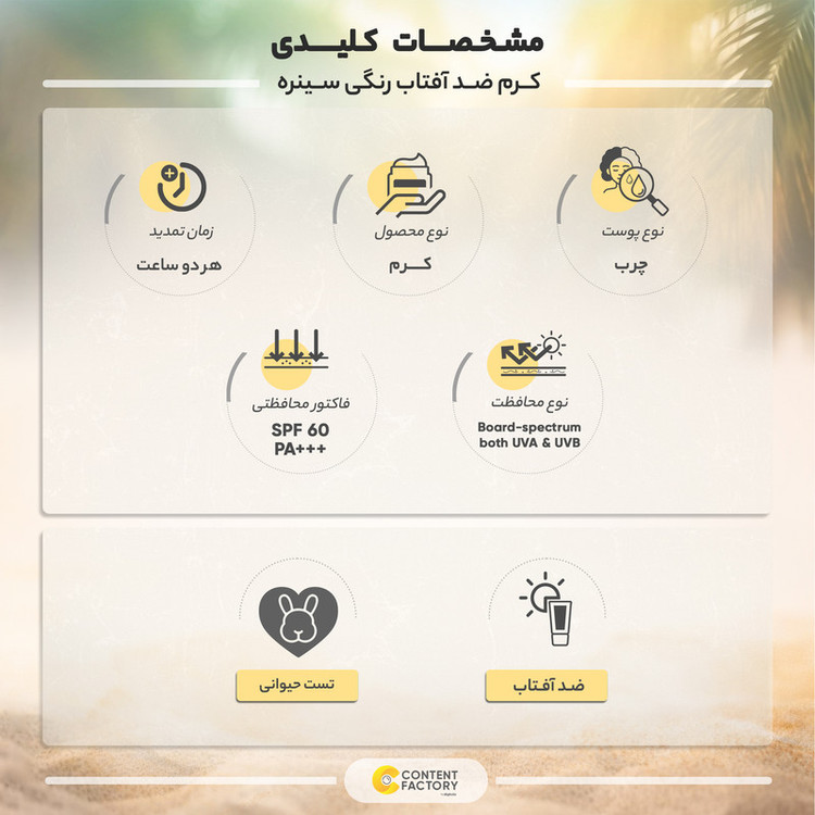 ویژگیهای ضدآفتاب : محافظت کننده در برابر اشعه UVA , محافظت کننده در برابر اشعه UVB , فاقد پارابن
