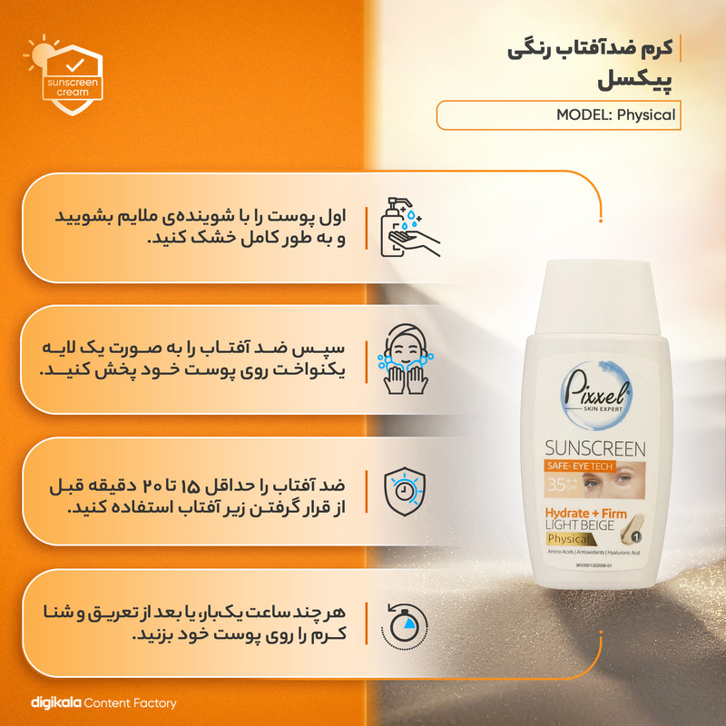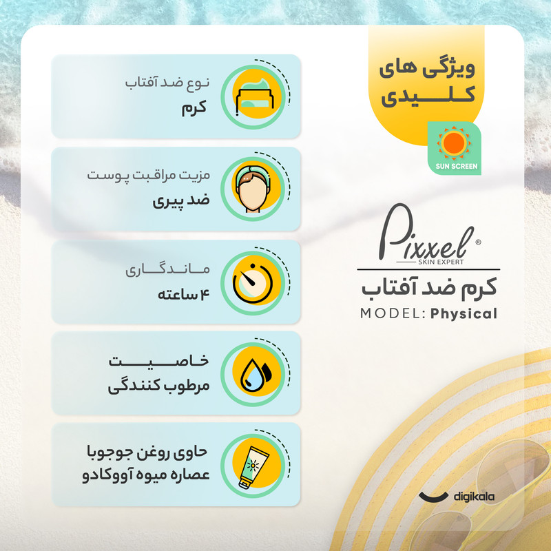 ویژگیهای ضدآفتاب : محافظت کننده در برابر اشعه UVA , محافظت کننده در برابر اشعه UVB , مرطوب کننده