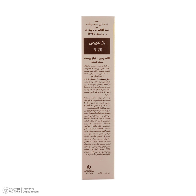 کرم ضدآفتاب سان‌سیف مدل N 20، حجم 40 میلی‌لیتر