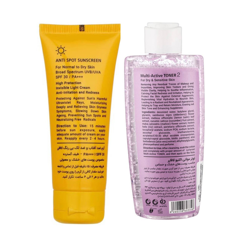 کرم ضدآفتاب و ضد لک بی رنگ لافارر مخصوص پوست های خشک و معمولی SPF30 با فرمولاسیون سبک سبب محافظت بالا از پوست در برابر اشعه های مضر آفتاب ، پیشگیری و رفع کننده لک های پوستی ، رطوب رسانی عمقی و رفع علائم خشکی ، ضدحساسیت و قرمزی ، کند کردن روند پیری پوست و خنثی کردن رادیکالهای آزاد میگردد.