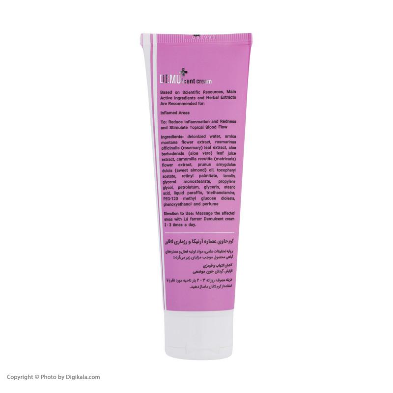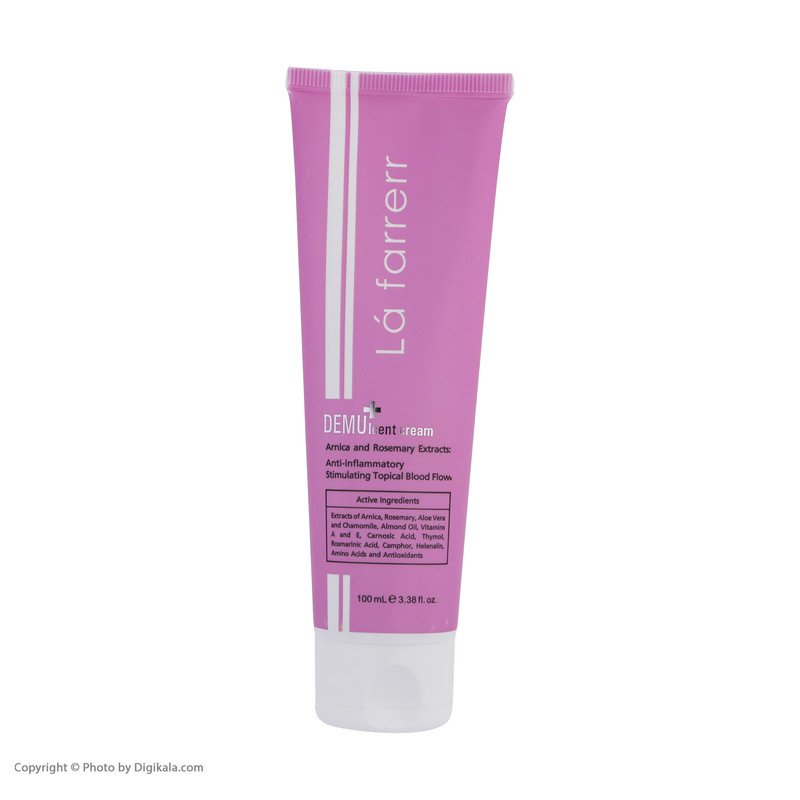 کرم آرنیکا دمو لافارر حاوی عصاره گیاهان آرنیکا، رزماری، آلوئهورا، بابونه، روغن بادام، وازلین، گلیسیرین و لانولین میباشد.