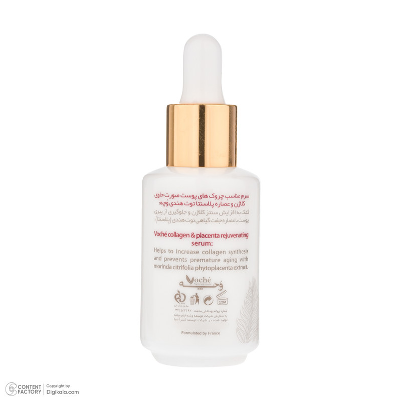 سرم ضد چروک وچه حاوی کلاژن و عصاره پلاسنتا توت هندی می باشد و برای آن دسته از افرادی که دچار چروک روی پوست صورت هستند، بسیار مناسب است. این محصول یک سرم صورت با عملکرد شبه بوتاکس است که با افزایش سنتز کلاژن از پیری زودرس پوست جلوگیری می کند. همچنین با افزایش استحکام پوست از افتادگی موجب جوانساری پوست می گردد. این سرم Voche با قدرت جذب بالا رطوبت پوست را حفظ می کند و از خشکی و ایجاد خطوط جدید بر روی پوست جلوگیری می کند.