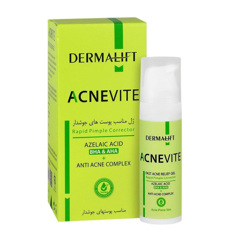 سایر توضیحات : ژل ضد جوش اورژانسی آکنویت درمالیفت، مهارکننده فوری جوش فعال کاهش التهاب و قرمزی با بهرهمندی از نیاسینامید و آزلائیک اسید جلوگیری از بروز مجدد جوشها به کمک اسید سالیسیلیک و زینک جمعکننده منافذ باز پوست با به کارگیری زینک PCA و دکسترین