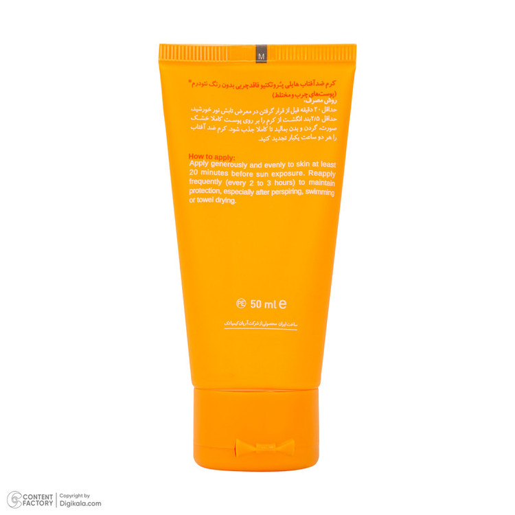 راهنمای استفاده : حداقل 20 دقیقه پیش از قرارگیری در برابر نور خورشید، مقدار کافی از ضد آفتاب را بر روی پوست کاملا خشک ناحیه گردن، صورت و بدن پخش کنید تا کاملاً جذب شود. بهتر است هر 2 ساعت یکبار آن را تمدید کنید.