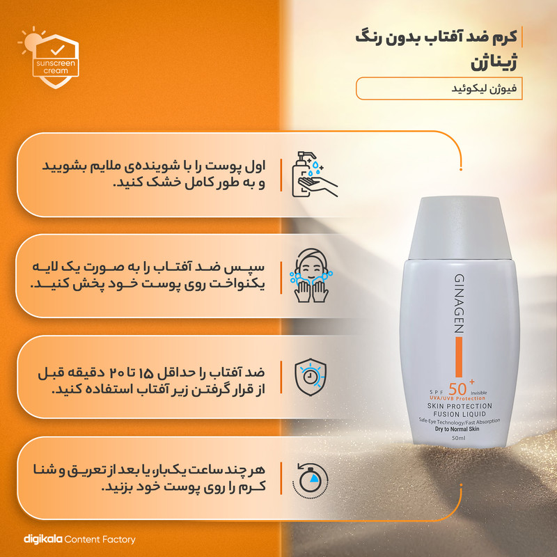 کرم ضدآفتاب ژیناژن مدل فیوژن لیکوئید، حجم 50 میلی‌لیتر